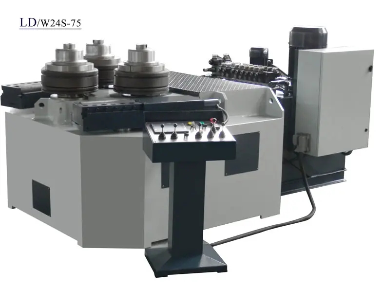 -它是一種弧形向下調(diào)節(jié)式三輻條型彎折機(jī),可以一次完成各種型材的四舍五入、弧形和四舍五入的功能。(注:當(dāng)軋制型材的精度高時(shí),必須準(zhǔn)備一個(gè)特殊的模具。如果精度得到適當(dāng)放松,可以使用通用模具來(lái)完成軋制。)